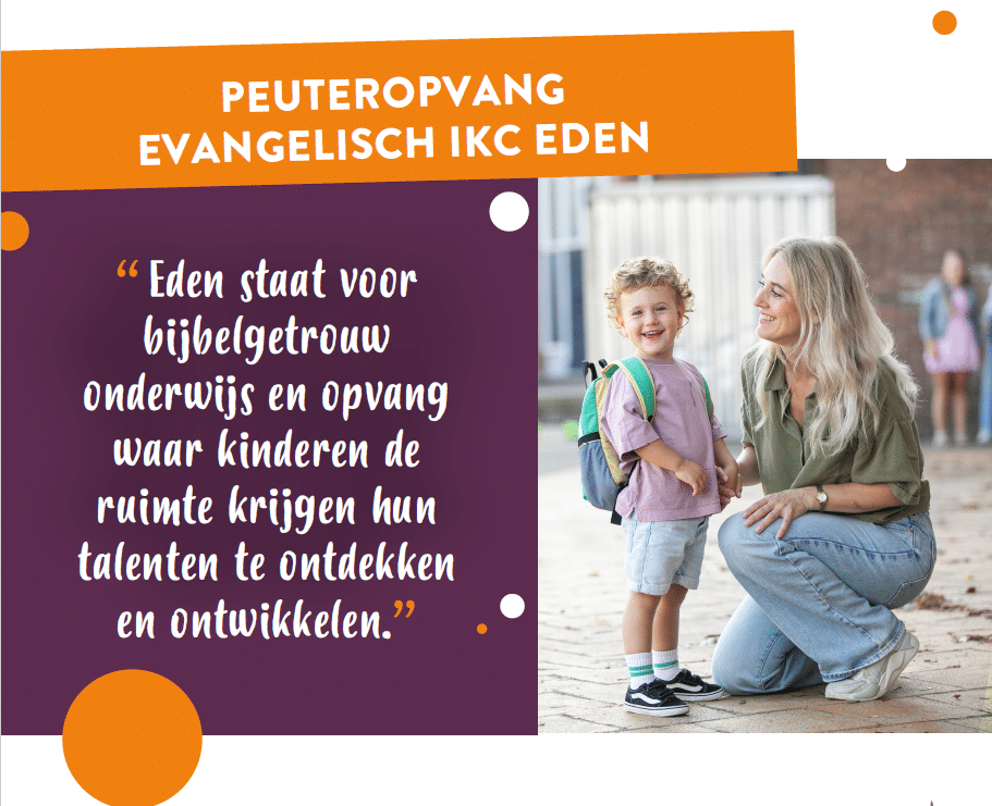 De speelochtenden bij IKC Eden vinden plaats op maandag, dinsdag, donderdag en vrijdag van 8.45 tot 12.45 uur. Op woensdag is er geen opvang.